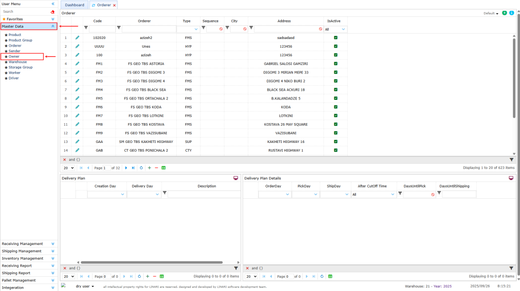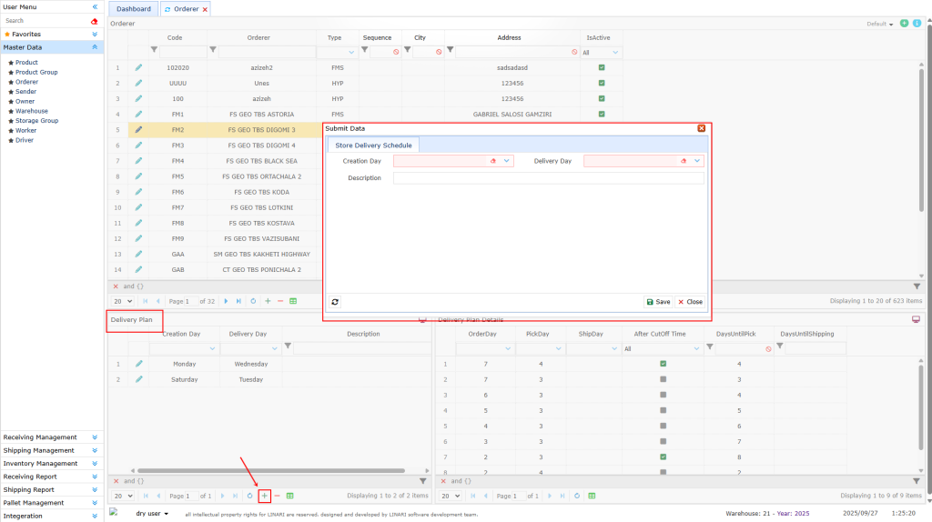 At the end click the Save button and the planning will be registered and displayed in the Delivery Plan list. When we click on it the planning details will be displayed in the Delivery Plan Details list.