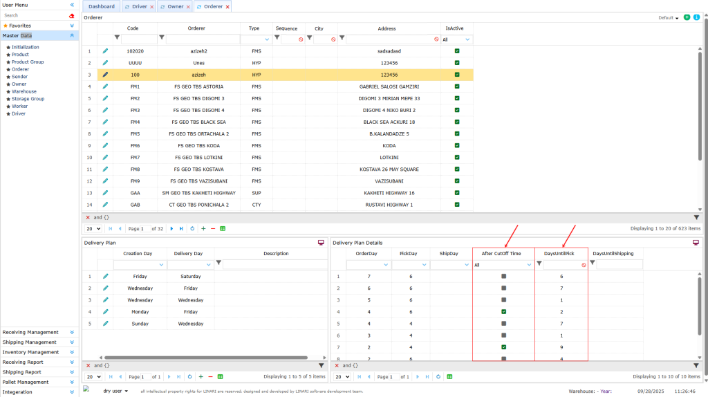 The After CutOff Time column is a point in time in the day we planned dividing the day into two parts which may have the same or different planning. The CutOff Time is specified in the warehouse settings. As we can see in the Delivery Plan Details list two rows are registered for the Creation Day. In one of them the After CutOff Time column is displayed as selected indicating planning in the first half of the day and in the other as unselected indicating planning in the second half of the day.