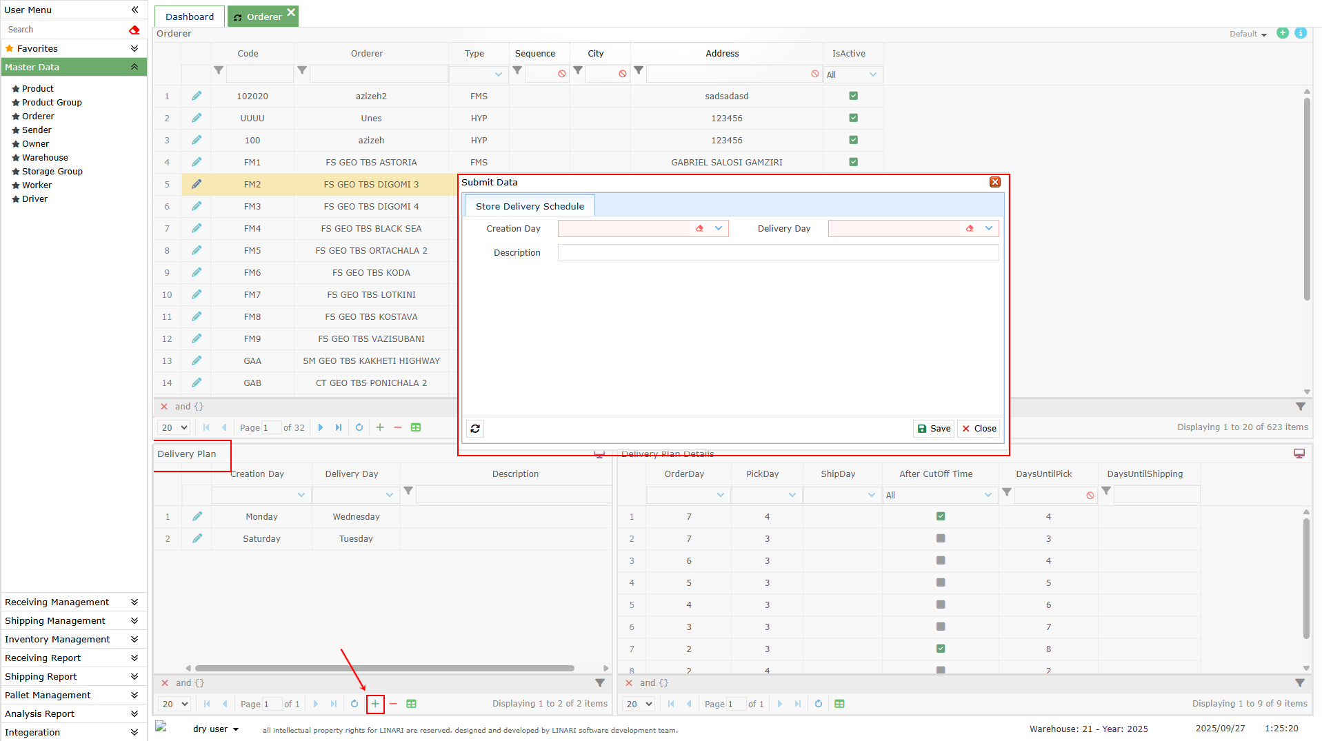 At the end click the Save button and the planning will be registered and displayed in the Delivery Plan list. When we click on it the planning details will be displayed in the Delivery Plan Details list.