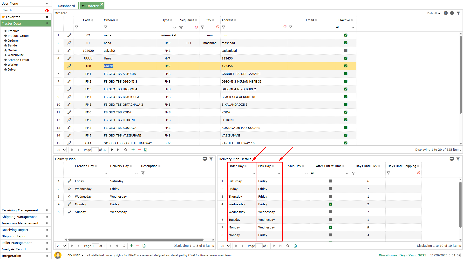 In the Picking Plan On column the date of product collection for delivery is displayed and in the Due Day column the number of days remaining until the Picking Plan On date is displayed.