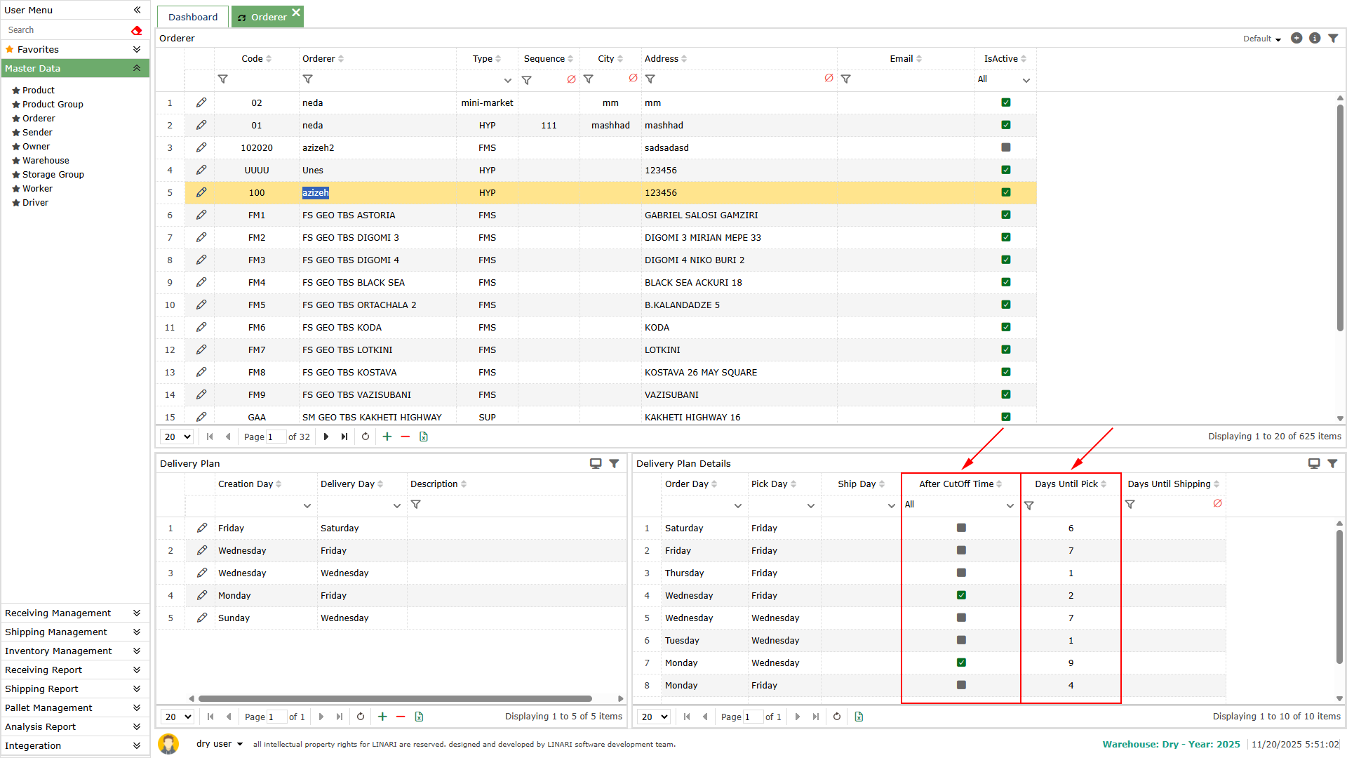 The After CutOff Time column is a point in time in the day we planned dividing the day into two parts which may have the same or different planning. The CutOff Time is specified in the warehouse settings. As we can see in the Delivery Plan Details list two rows are registered for the Creation Day. In one of them the After CutOff Time column is displayed as selected indicating planning in the first half of the day and in the other as unselected indicating planning in the second half of the day.