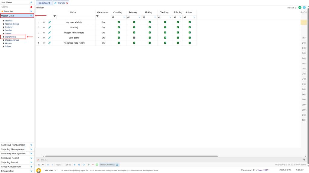 There are various tasks in the warehouse that during the sending and receiving process each warehouse keeper must be able to complete their duties and record and track information according to the defined access level and assigned responsibilities. Therefore it is necessary to register warehouse keepers’ information in the system.