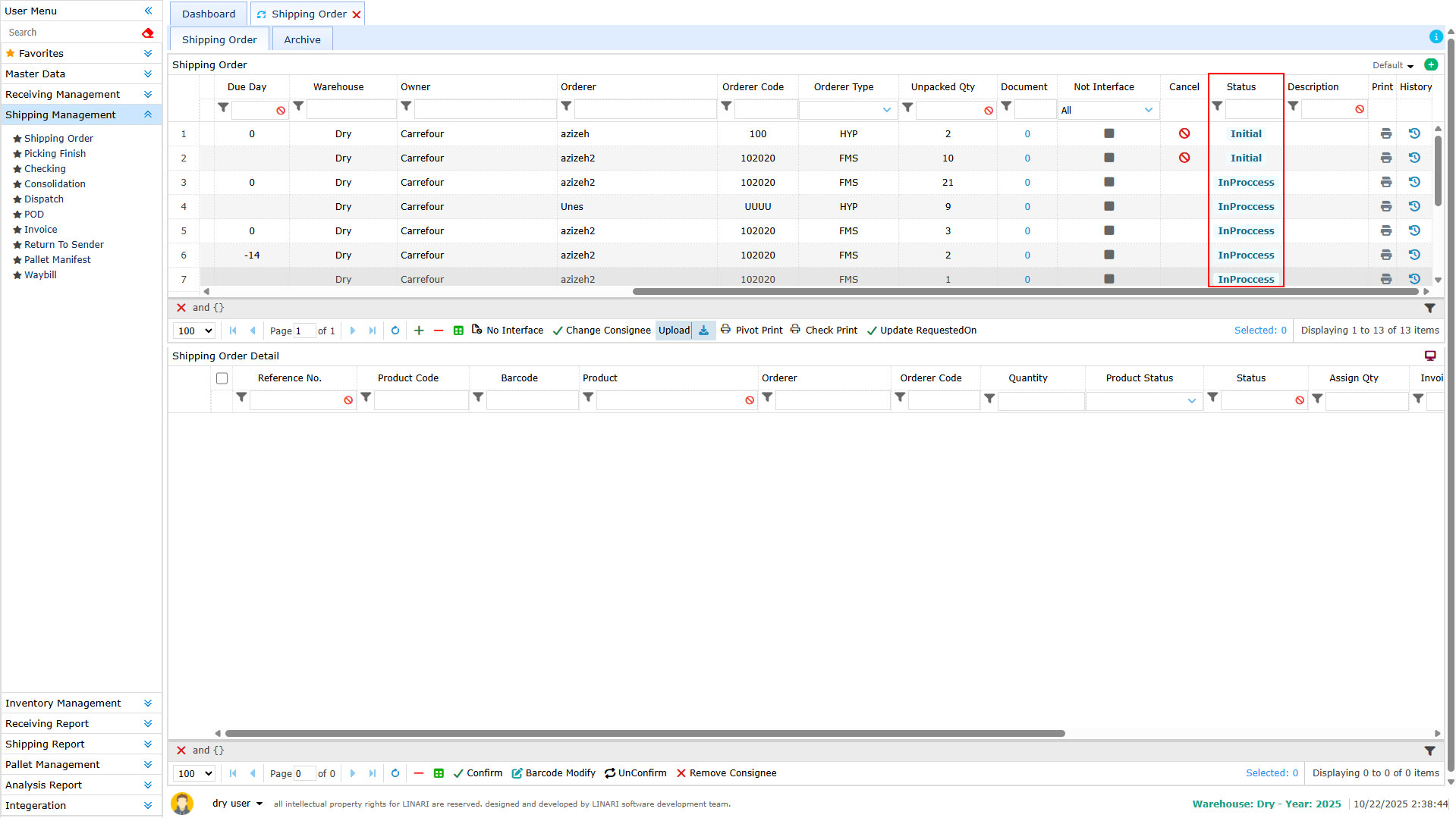 1. Click on the Shipping Management menu and select the Shipping Order submenu.